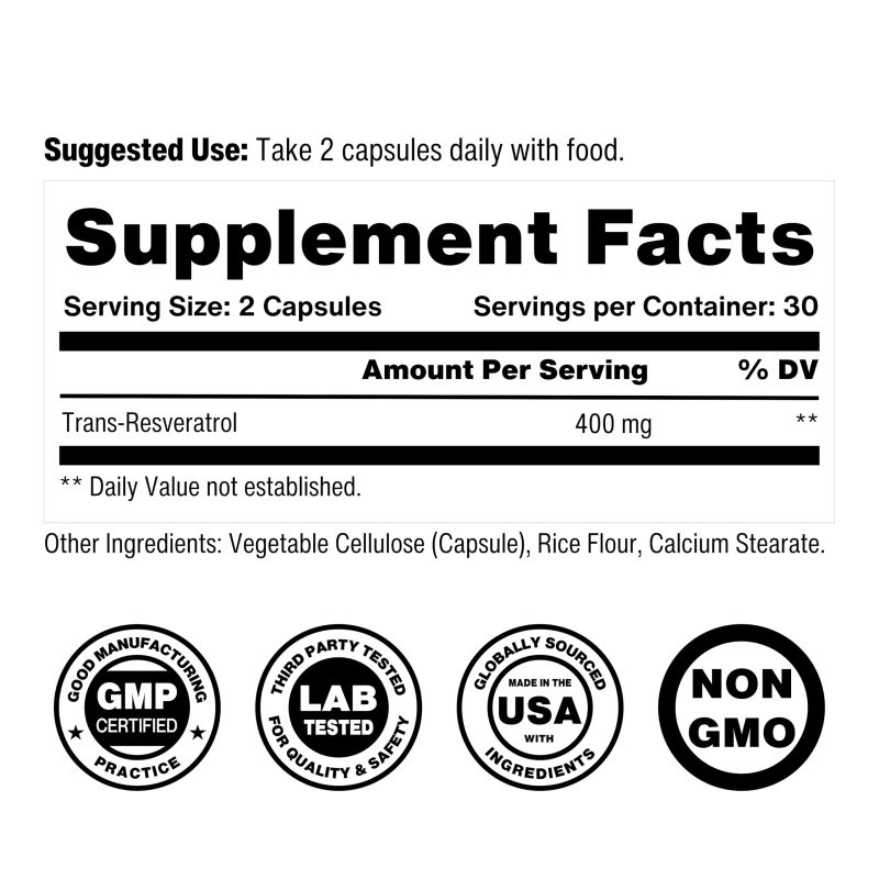 Trans-Resveratrol 400mg | Longevity Supplement for Healthy Aging and Cellular Health | High Absorption for Maximum Benefit | 30 Servings | Non-GMO & 3rd Party Tested Celly