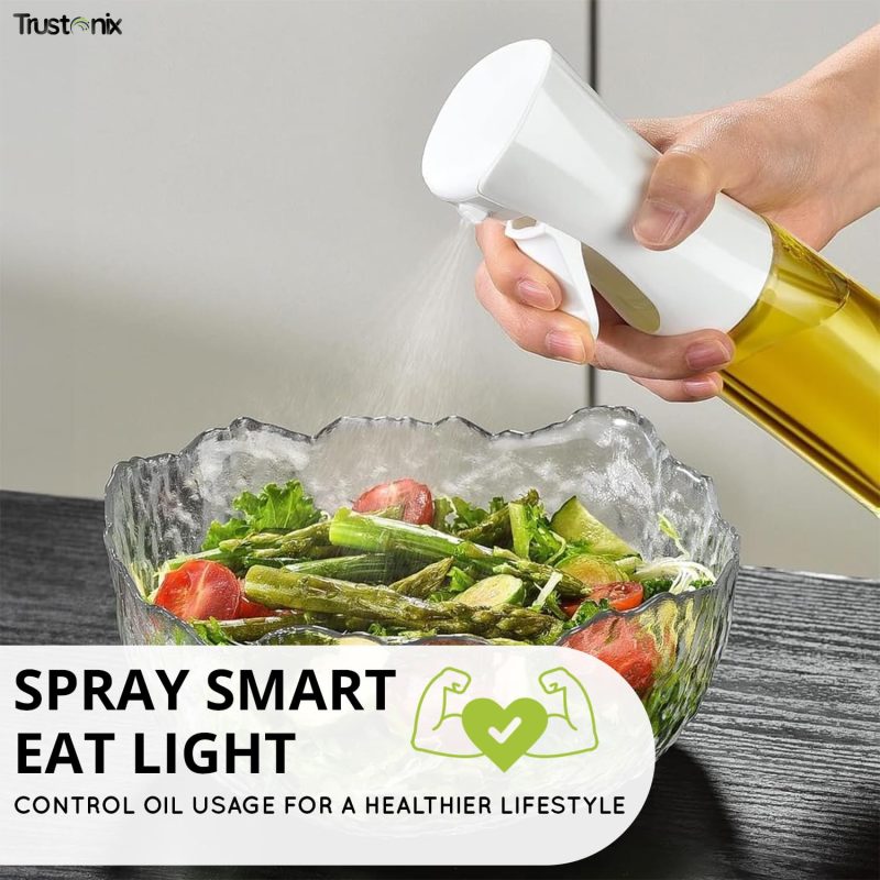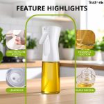 VERSATILE SPRAY OIL BOTTLE FOR HEALTHY MEALS: This versatile spray oil bottle is ideal for olive oil, avocado oil, lemon juice, and more. The glass oil spray bottle is great for salads, grilling, baking, and BBQ. Use this cooking oil sprayer to reduce fat while enhancing flavor. Whether you’re meal prepping or cooking for guests, this elegant glass bottle supports clean, precise spraying every time.
