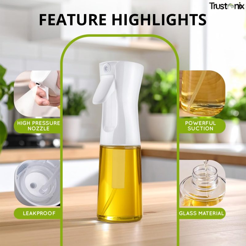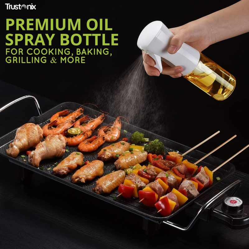 REFILLABLE & DURABLE OIL SPRAY BOTTLE FOR COOKING: Designed with a food-grade, BPA-free glass body, this oil spray bottle for cooking is durable, reusable, and eco-friendly. The anti-leak, anti-clog nozzle provides a smooth spray without dripping. It’s the perfect oil sprayer for everyday use, elegant enough for your dining table and tough enough for kitchen heat.