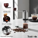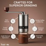 Precision Grinding with Adjustable Conical Burr: The professional hand coffee grinder with a high quality stainless steel anticipated burr with smooth grind and great efficiency. It has the ability to grind pure fine or coarse, it will give your beans to their best and original flavours without overheating.