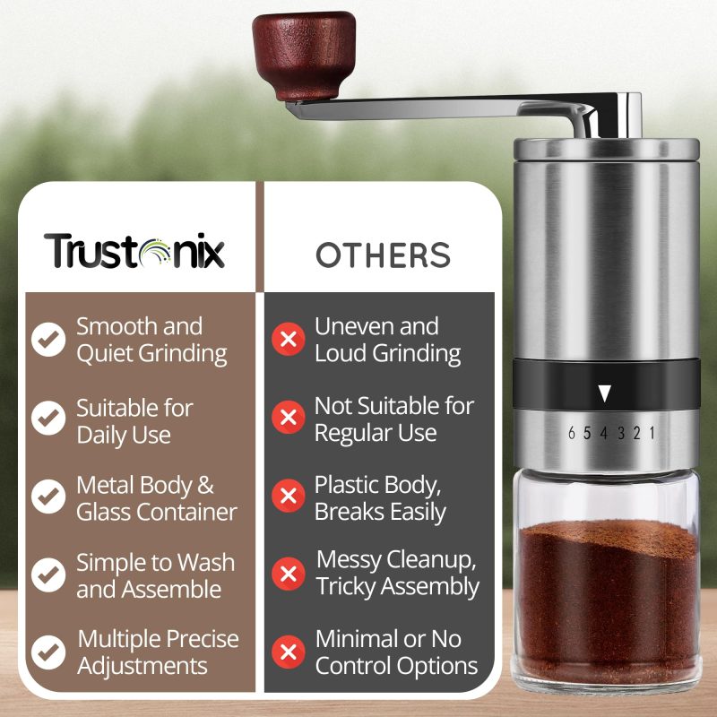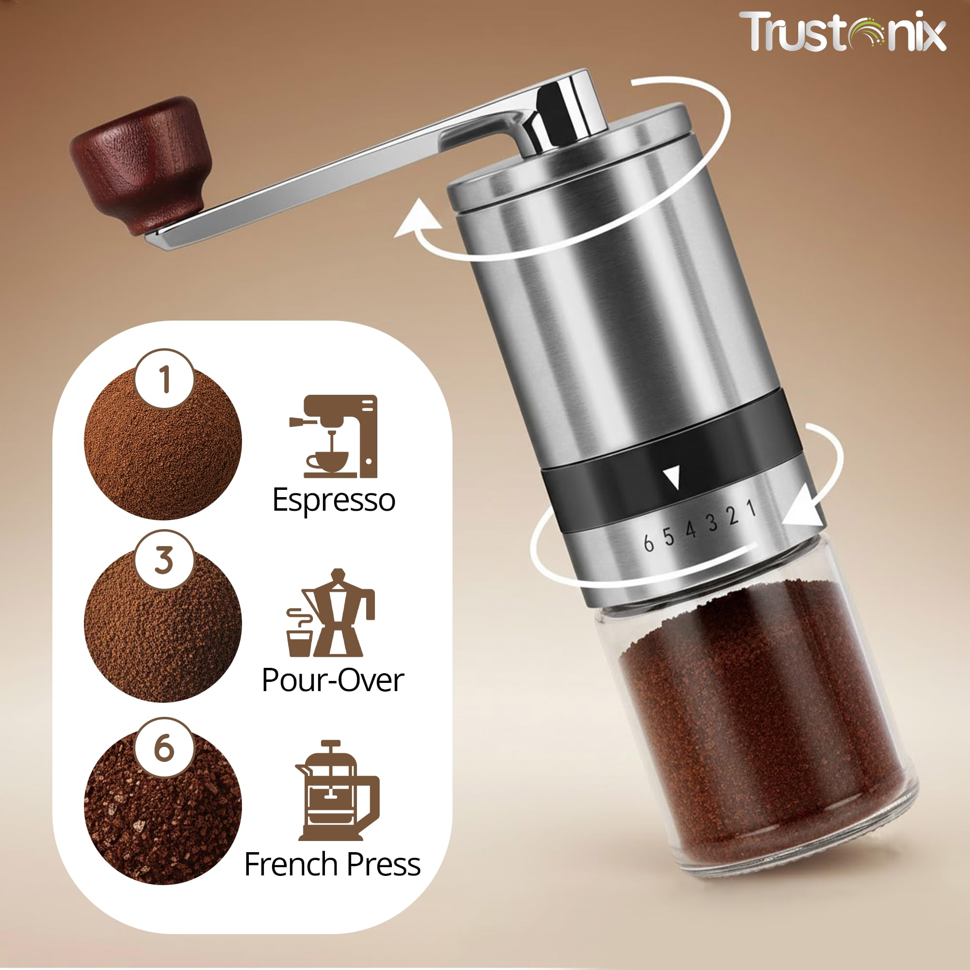 Ideal for All Coffees: The overall performance of the grinder is consistent across all sizes, which enhances the overall flavour extraction. The manual grinding uses a smooth method for accuracy and uniformity for every cup you brew, whether at home or in the office.