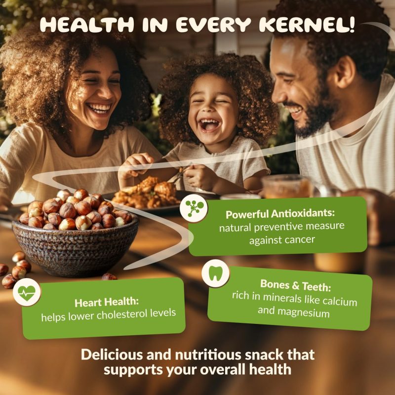 Nutrient-Rich Superfood: Packed with essential nutrients including protein, healthy fats, fiber, vitamins E and B6, and minerals like magnesium and copper. These nuts are a perfect addition to a healthy lifestyle and balanced diet.