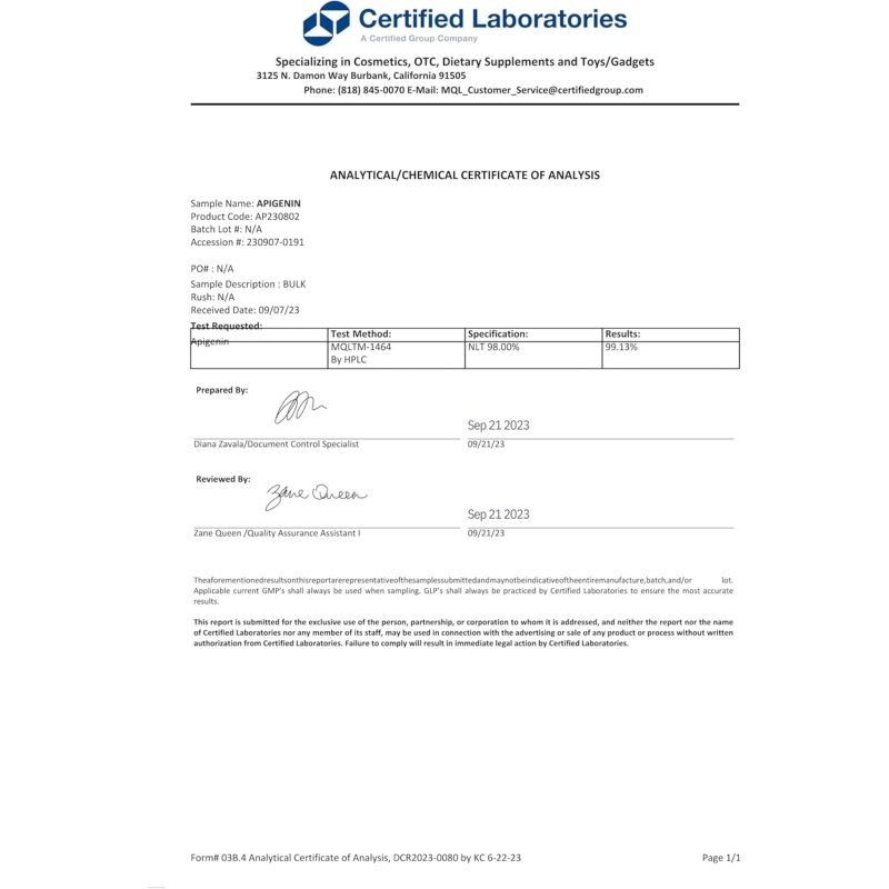 Top-tier Quality – Vegan, non-GMO, and free of gluten, soy, and dairy, these apigenin capsules provide 120 servings of high-potency support without artificial additives.